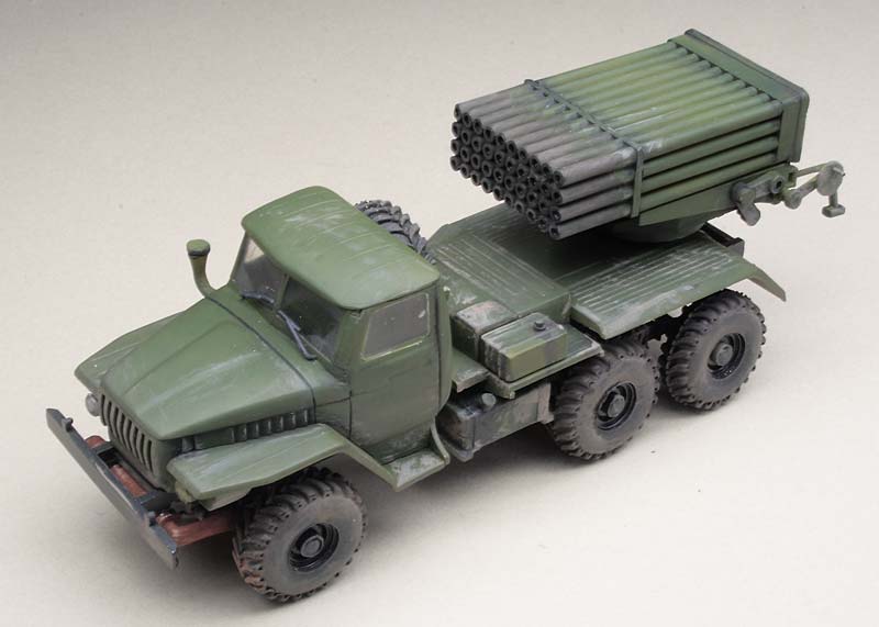 | BM-21 Grad (MODELISM \300) 2009/07/23 リストに戻る 1963年ソビエト連邦軍はBM-21の開発を開始しました。Ural-375D6輪式トラックの荷台部分に全長の長い40本の122mmロケット弾発射器チューブをまとめた多連装ロケットランチャーです。本モデルは1976年以降の生産型で車体がUral-4320になったものです。 全長 7.35m 全幅 2.40m 全高 3.09m 重量 13.7t(戦闘重量) 乗員数 5名 整地速度 75km/h 不整地速度 35km/h ZIL 315空冷V8ガソリンエンジン180hp 主武装 9P132 40連装122mmロケット弾発射器 連射速度は40発/20秒(一斉射撃時) 1発/5秒(単発射撃時) |