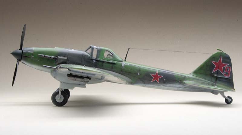 | IL-2 Flying Tank (TOKO \700) 1942 2009/06/27 go back to list ソ連のイリューシン設計局が開発した主力対地攻撃機(シュトゥルモヴィーク)です。 IL-2は1938年にソビエト中央設計局(TsKB)の設計主任、セルゲイ=イリューシンを長とする設計チームが開発したTsKB-55を発展させた対地攻撃機です。原型機のTsKB-55は1939年に完成して初飛行し、その後、軽量化単座型のTsKB-57が1940年10月に初飛行し、各種試験で高い性能を示したため、試験審査の終了した1941年6月より「Il-2」と改称されて直ちに量産が開始されました。 全長: 11.65 m 全幅: 14.60 m 全高: 3.28 m 翼面積:38.5 m2 全備重量: 5,788kg エンジン:ミクーリン AM38 1665hp×1 最大速度: 449km/h 実用上限高度:6,500m 航続距離: 638km 武装 爆弾等 最大400kg 20mm機関砲×2・7.7mm機関銃×2(固定) 乗員 1名 |