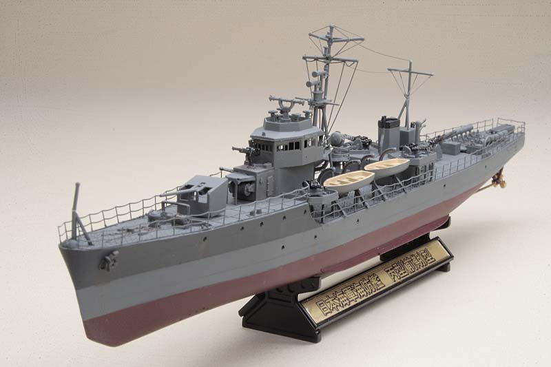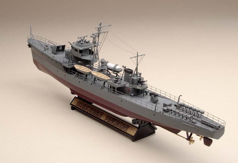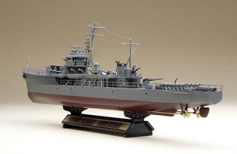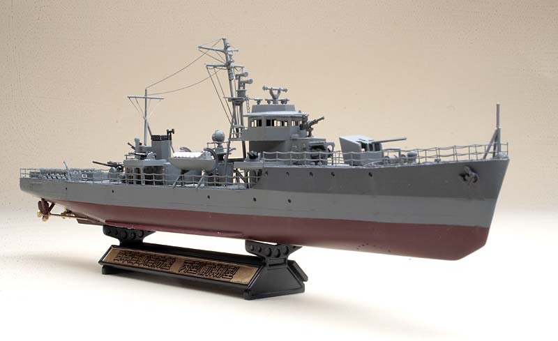 日本海軍海防艦丙型(前期型) (PIT ROAD\4,500) 2011/06/23 リストに戻る 日本海軍は開戦当時には輸送船等の護衛を重要視していませんでした。しかし戦いが熾烈になるにつれ必要に迫られた海軍は最優先で建造し、一族合計172隻を建造しました。極力短期間で建造するため、艦体は極力直線的に設計し、電気溶接とブロック工法を大幅に工期を縮めました。 ディーゼル機関を搭載した海防艦を丙型、タービン機関を搭載した海防艦を丁型としました。本艦は900tという大きさに比して一回り上の艦艇に搭載する兵器を搭載し、長大な航続距離で活躍しました。 全長 67.5m 全幅 8.4m 吃水 2.90m 機関 23号乙型ディーゼルエンジン2基2軸 1,900馬力 燃料 重油 最大速力 16.5ノット 航続距離 14ノットで6,500海里 兵装 45口径12センチ高角砲 単装2基 25mm三連装機銃2基 三式迫撃砲単装1基[1] 三式爆雷投射機12基 爆雷投下軌条1基 爆雷120個 同型艦 56隻 排水量基準: 745t |