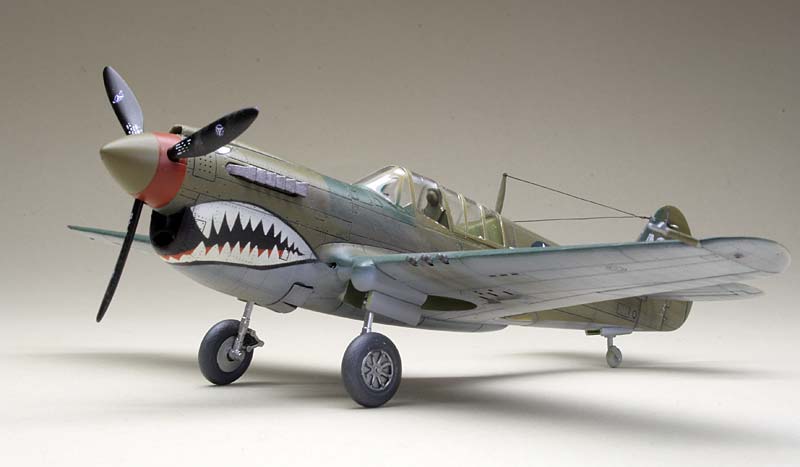 | P-40M/N WARHAWK (ACADEMY\756) 2009/09/10 二次大戦機リストに戻る 原型となったXP-40はP-36の改造型として空冷エンジンを液冷のアリソンエンジンに換装し1938年初飛行しました。 この機体はP-36よりも70kmも速かったので、直ちに量産されまずフランスに援助機として振り向ける事となりましたたが1940年フランスの敗戦によりトマホークの名前でイギリスに援助機として送られました。 太平洋戦争開戦後零式戦闘機や一式戦闘機との交戦では空戦性能に劣とったため武装の貧弱さと高度性能の改善をはかり、マーリンエンジン搭載に改良したF型を投入し、これを「ウォーホーク」と称しました。 Span:11.38 m Length:10.16 m Height:3.75 m Wing Area:21.92m2 Weight Empty:2,802 kg Weight Loaded:4,014 kg Power Plant: 12-cylinder, 1,040-h.p. Allison V-1710-81 Cruise Speed:386 km/h Top Speed:564 km/h Range:1,207 km Service Ceiling:9,449 m) Armament: Six wing-mounted .50-caliber (12.7-mm) machine guns, and up to 670 kg of bombs |