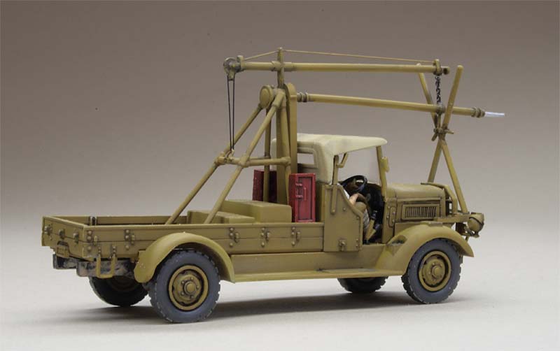 | トヨタ GB エンジン起動車 (Hasegawa\760) 2009/04/08 リストに戻る エンジン起動車はエンジン始動車とも呼ばれ、トヨタGB型トラックをベースに改造されました。GB型トラックは昭和14年に発売され昭和17年4月に製造が打ち切られるまで各型合わせて19,870台生産され軍用、民間用に用途に応じて改造されました。起動車においては装備の都合上ラジエターがむき出しになり、後輪もダブルタイヤからシングルタイヤに改造されGB型とは見えないほどでした。この起動車は陸軍航空隊で使用されました。 ホイルベース:3,609mm 発動機:B型水冷エンジン 最大積載量:2,000kg |